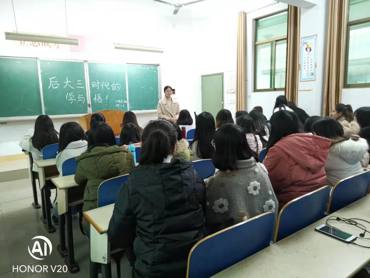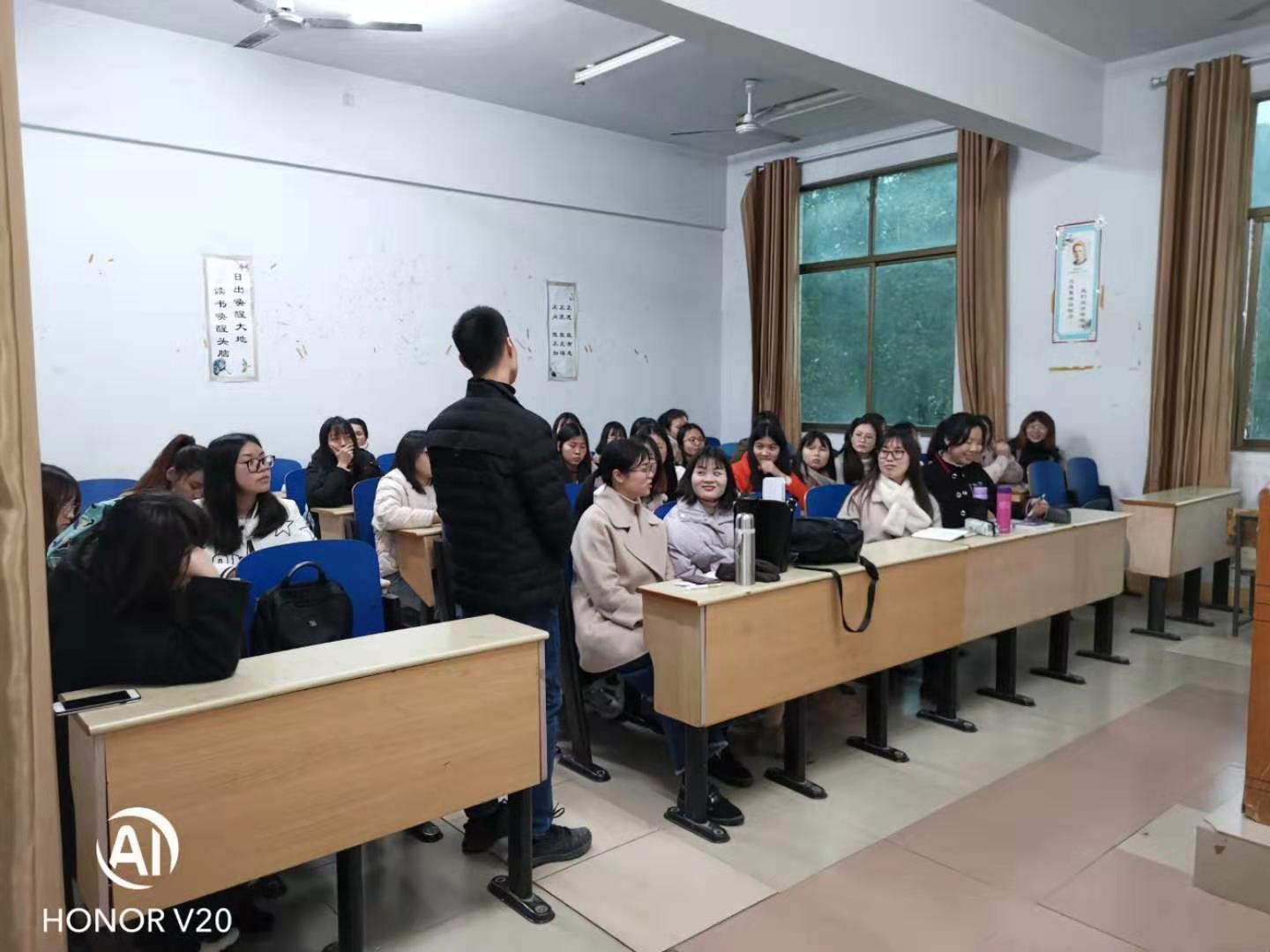 本网讯(通讯员 刘珍)2019年3月4日,由乐鱼(中国)2016级英语(师范)1班组织的“后大三时代的学与悟”主题交流会在张家界校区逸夫教学楼3308举行,来自该院15级英语师范专业的刘樨、何柳和陈有为3位同学与该班全体同学参与了活动。