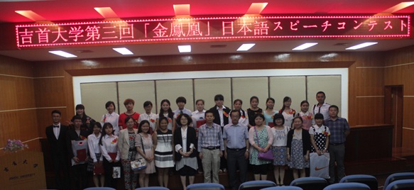 本次比赛从语音语调、语法词汇、内容结构和表达能力四大项对选手的日语演讲水平进行全面评估。经过评委们严格评选,最终一年级组选手李智胜、二年级组汤洁源、三年级组王静夺得本次比赛一等奖,一年级组尹璟、二年级组孙湘云、三年级组陈亚兰荣获二等奖,一年级组王巧丽、江雨婷,二年级组鲍山、谢深深,三年级组李美、刘杏荣获三等奖,一年级组贺丽芝、宋卉珍,二年级组喻子翾、李思洁获得优胜奖。