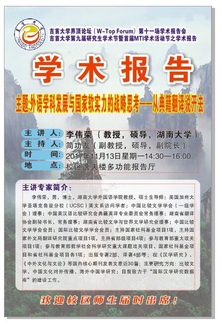 吉首大学界顶论坛(W-Top Forum)第十一场学术报告会