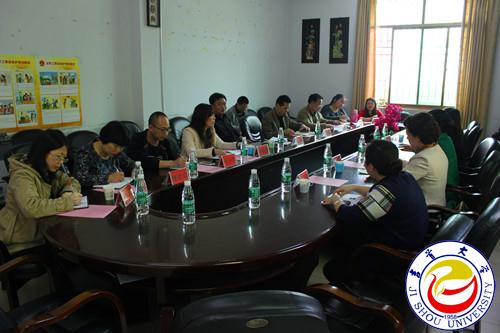 当天下午2:30,座谈会在学院会议室召开,由学院党委书记石红梅主持。王绯副校长代表学校党委、行政对怀化学院副校长张玲一行来校表示欢迎,并简要介绍了学校发展情况。怀化学院张玲副校长表达了对吉首大学热情接待的感谢,并介绍了此行到访的主要目的。在两院院长分别介绍院情之后,与会者就大湘西民族文化翻译、外语教师教育、外语学科服务地方经济社会发展等话题进行了研讨,并就学科转型发展、专业人才培养等话题交流了经验。