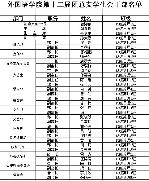 乐鱼(中国)第十二届团总支学生会干部名单