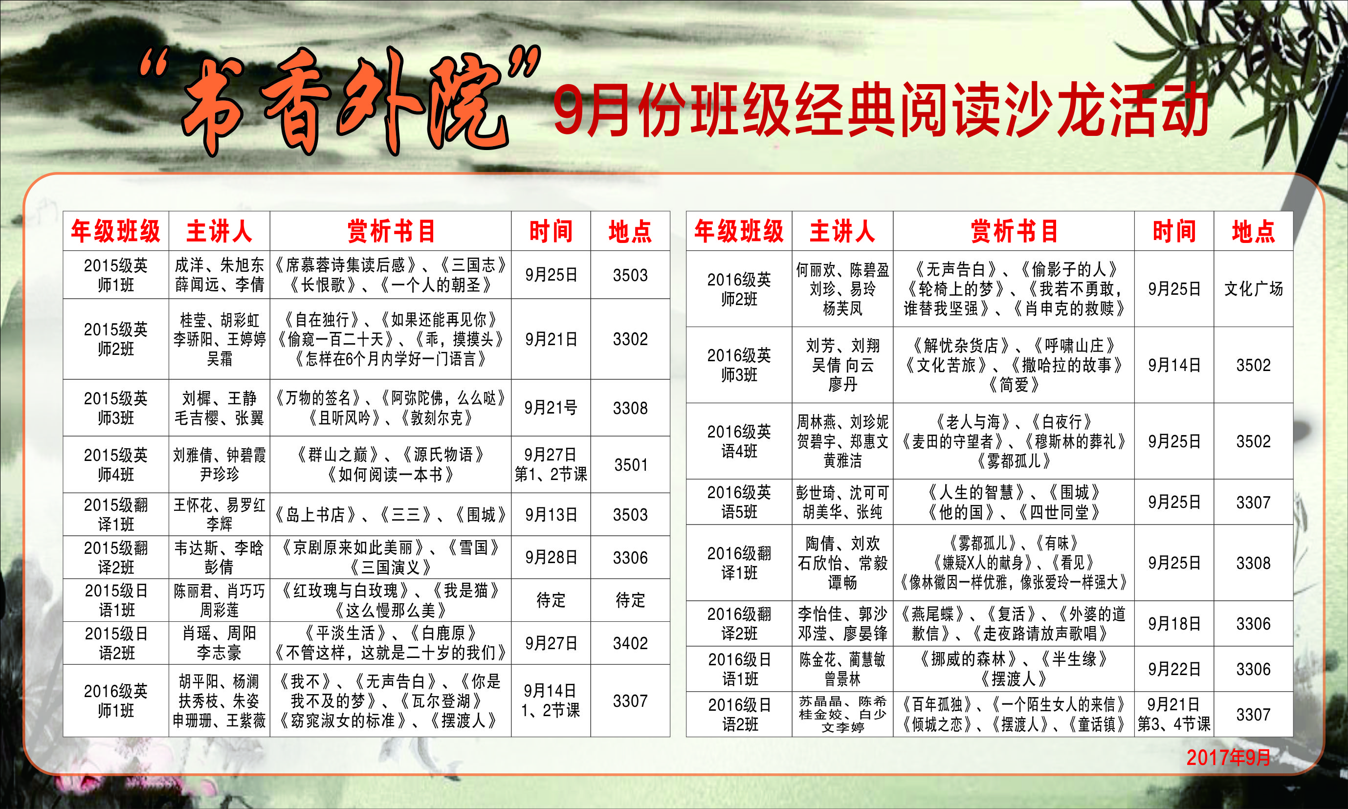 乐鱼(中国)9月份书香人生•经典阅读沙龙活动