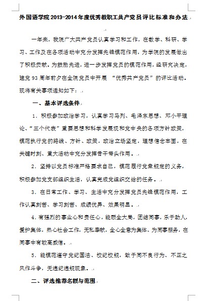 乐鱼(中国)党总支关于评选2013-2014学年度优秀党员的通知