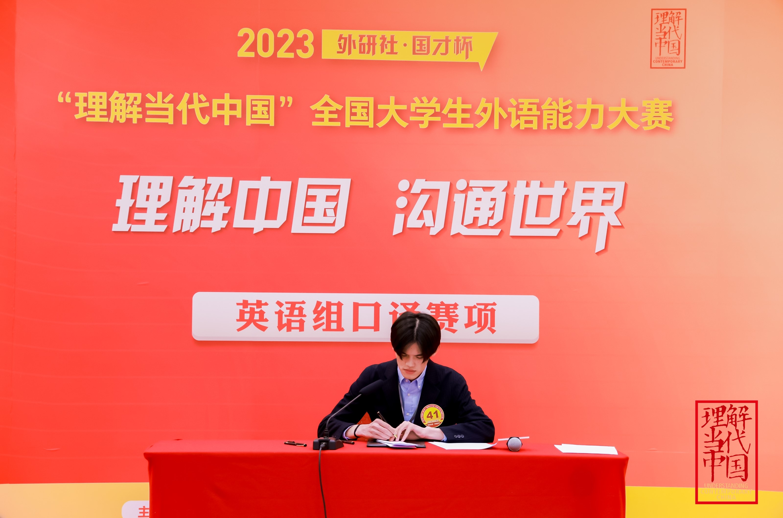 大赛由北京外国语大学主办、外语教学与研究出版社承办。大赛以“理解中国,沟通世界”为主题,分为英语组和多语种组两大组别,历经校赛、省赛、国赛三个赛段,来自1300多所院校的近百万学生参赛。经过省赛和国赛第一轮的层层选拔,我校翻译硕士研究生李海涛以其扎实的专业功底,良好的心理素质,同全国79所院校102名口译选手一起脱颖而出,展开了国赛第二阶段的巅峰对决。经过两轮激烈角逐,李海涛以累计成绩赛场排名第五,斩获全国银奖。