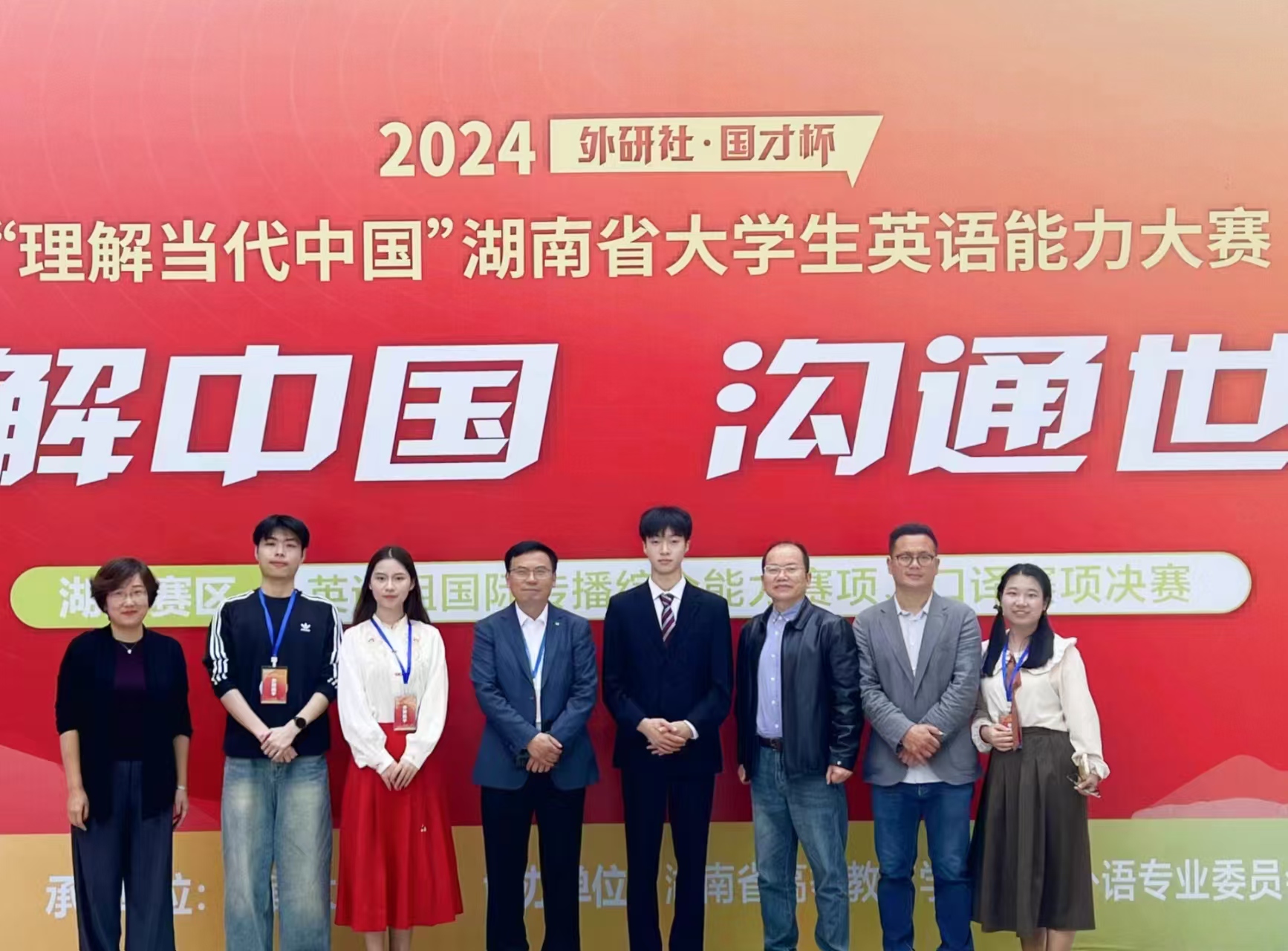 11月1日至3日,“外研社·国才杯”“理解当代中国”湖南省大学生英语能力大赛在吉首大学举行。本次大赛由湖南省教育厅主办,吉首大学承办,湖南省高等教育学会大学外语专业委员会以及外语教学与研究出版社协办。在综合能力赛项中,我台数名主播在省赛初赛(笔试)中顺利晋级现场决赛,最终获省赛金奖2项(两位国赛晋级选手),银奖1项(22法学刘柯帆);铜奖1项(23电子王梦琳)。