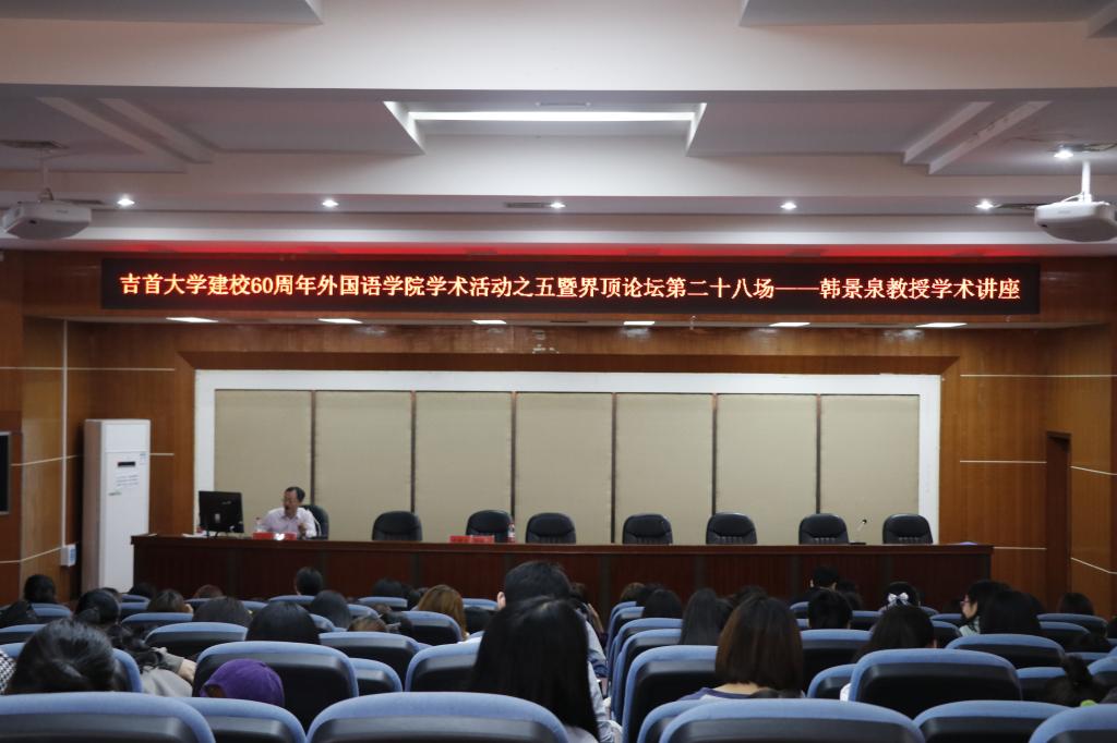 本网讯(通讯员 龙锐 张丽娜 唐明俊 覃思思)10月12日下午,乐鱼(中国)在逸夫楼多功能报告厅举行吉首大学建校60周年第五场学术讲座,本次讲座由乐鱼网页版校友广东外语外贸大学杰出学者韩景泉教授主讲,题为“名词性成分句法分布的结构关系”。讲座由乐鱼(中国)院长汤敬安教授主持,学院300余名师生参加。