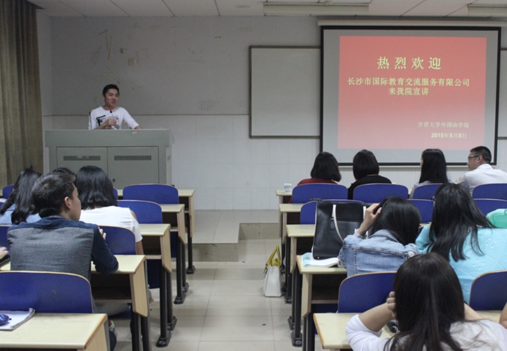 本网讯(杨东旭 余孟韬 何婷)5月8日长沙市国际教育交流服务有限公司于逸夫楼3220教室进行宣讲。此次宣讲由冯蕾老师主持。该公司优秀员工代表及公司负责人就当前日语专业就业形势以及个人经验与乐鱼网页版日语专业学生进行交流。