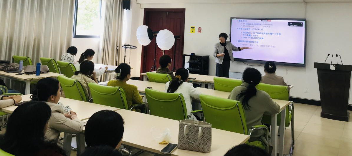 随后,第一教研室主任彭洵老师介绍了《大学英语班级动态调整机制》的细则。她首先通报了24级英语四级的报名情况,并通过对大学英语四六级考务信息的解读,以及对 22 级高级班学生随堂四级模拟考情况的总结,让参会的教师,尤其是第一次接触大学英语教学的老师对四级考试有了更为深入、全面的认识,为后续教学工作的针对性开展提供了有力支撑。