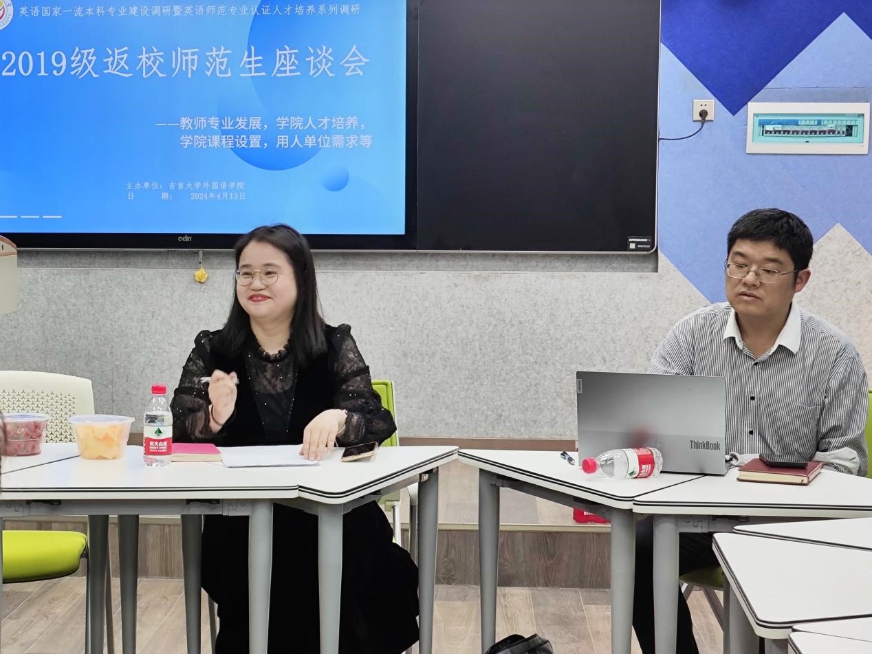 会议伊始,修伟老师介绍本次座谈会的意图,并通报了学院正在进行的师范类专业认证和本科教学水平审核评估准备工作;他表示,时隔一年同学们在各自岗位上历练后返校一定对曾经的学习有更深感悟,对英语师范专业教育教学有更深刻的认识,对母校人才培养有更具体的意见和建议,希望大家畅所欲言。
