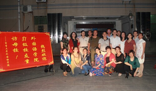 参观校园之后,开展了交流活动,交流活动气氛热烈,久别重逢的校友们畅叙往事,追忆难忘的母校情、同窗情,言谈甚欢。在离开母校时,外语系81级部分校友赠送学院礼仪镜以作纪念。