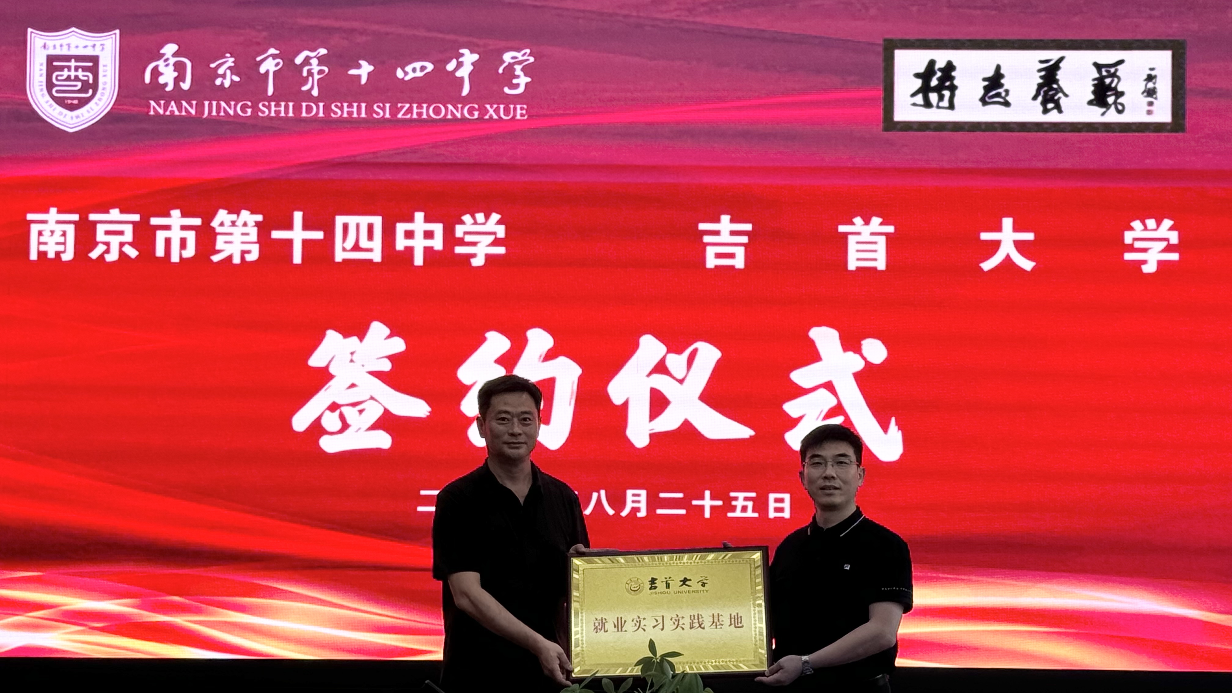 为发挥各自资源优势,本着服务企业发展,提高人才培养质量和促进毕业生就业的宗旨,经友好协商,我校先后与南京市第十四中学、南京市高淳区第一中学、南京一滴水广告有限公司、浙江未云腾数字技术有限公司、义乌市仁舜饰品有限公司签订协议,合作共建“吉首大学就业实习实践基地”。