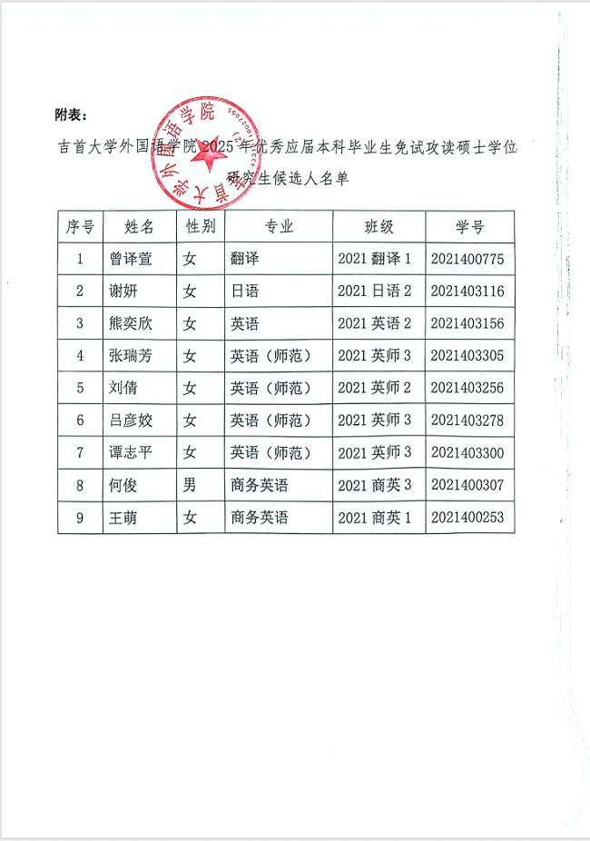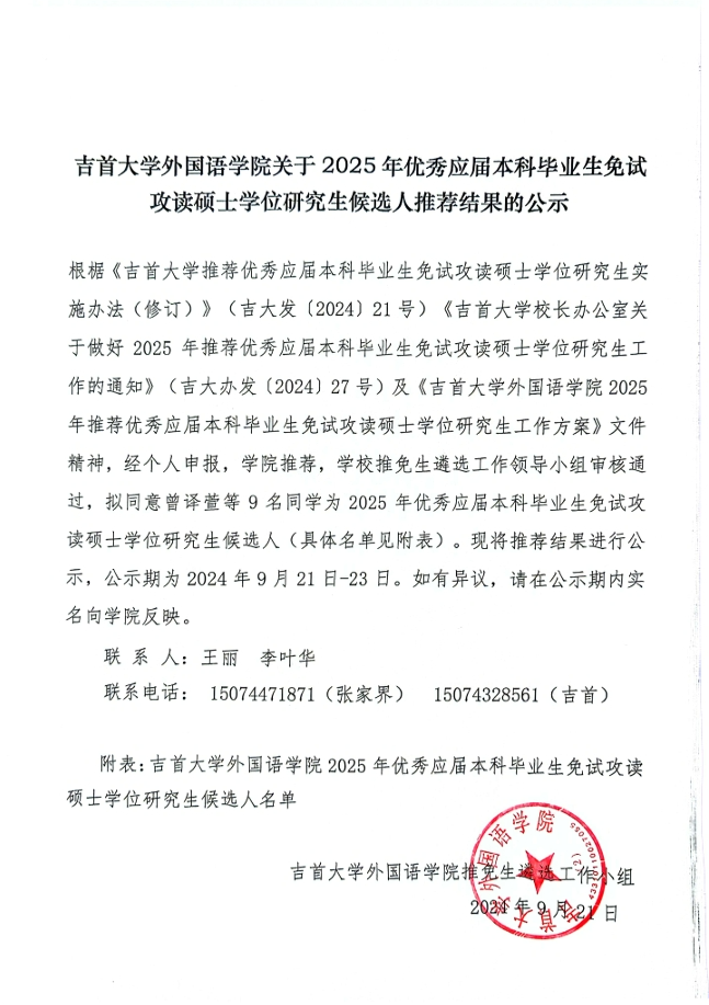乐鱼网页版关于2025年优秀应届本科毕业生免试攻读硕士学位研究生候选人推荐结果公示