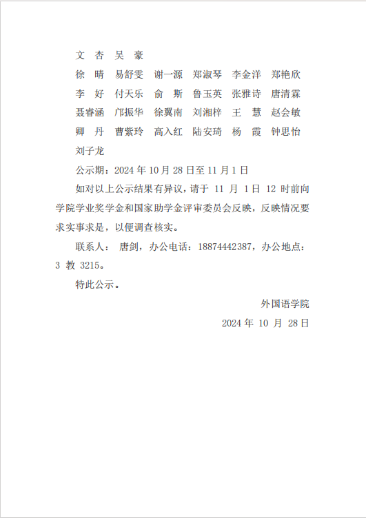 乐鱼网页版2024年研究生学业奖学金和国家助学金名单公示