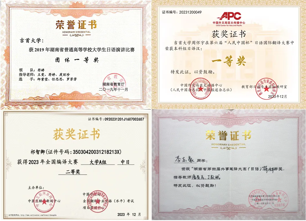 ✦近四年乐鱼网页版日语专业学生获得的部分学科竞赛奖励证书✦