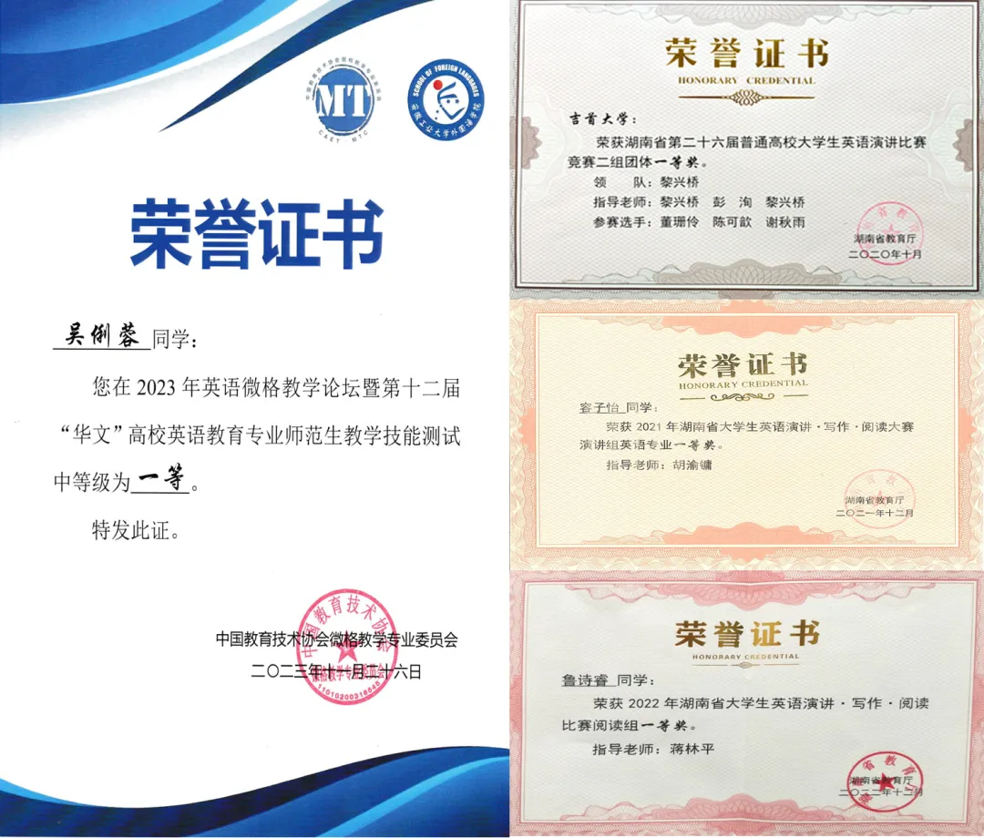 ✦近四年乐鱼网页版英语专业学生获得的部分学科竞赛奖励证书✦