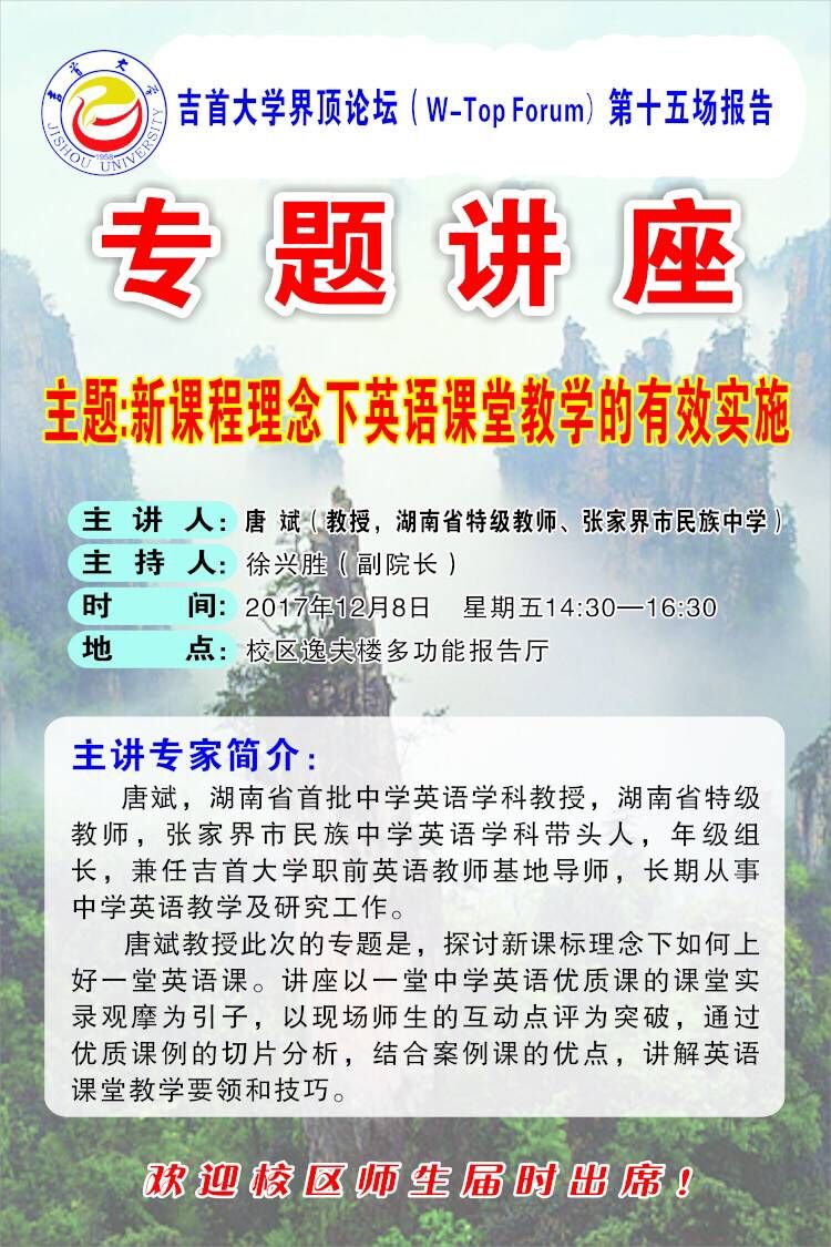 吉首大学界顶论坛(W-Top Forum)第十五场学术报告会