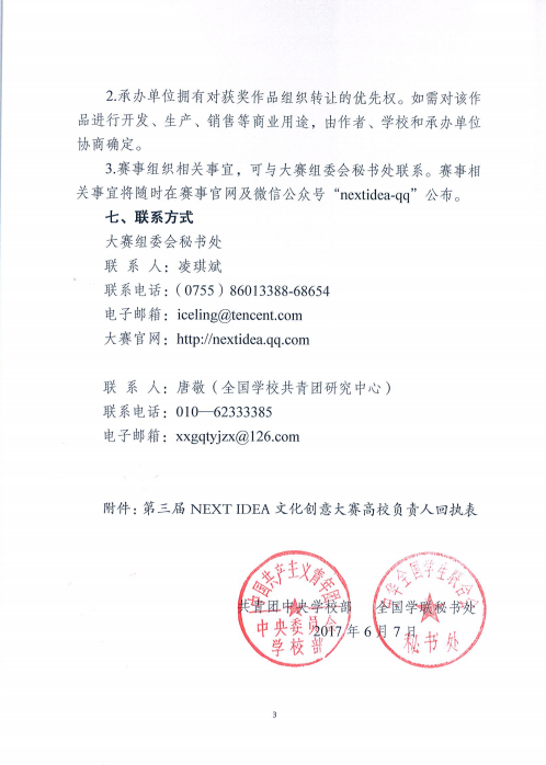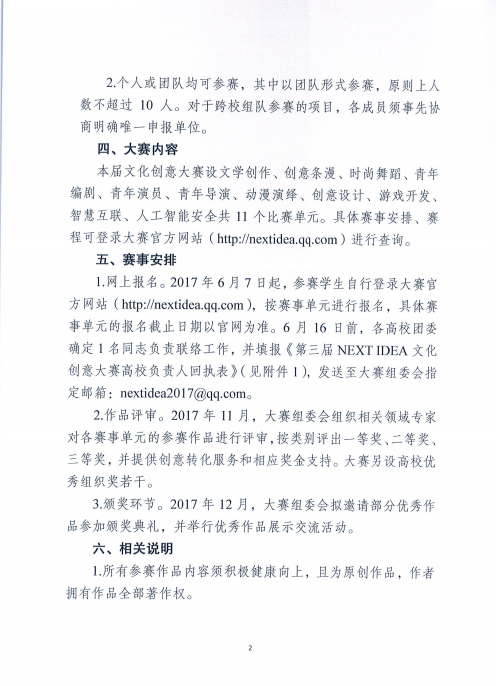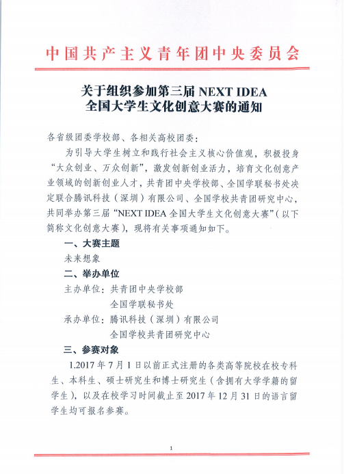 关于组织参加第三届NEXT IDEA全国大学生文化创意大赛的通知