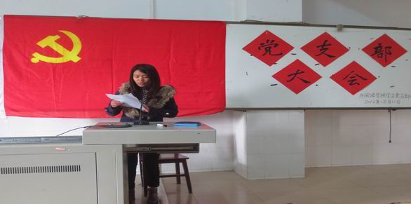 会议开始,冯蕾老师带领全体学生党员学习《中国共产党章程》,明确党员的责任与义务,督促大家在学习生活中起到模范带头作用,争当党员文明使者,提升党员综合素质。《章程》学习结束后,全体起立,奏唱国歌。然后,由申请转正的预备党员对自己的实际学习工作经历、获奖情况、思想状况进行汇报说明并向党组织提出转正申请,让在场的党员更加深入的了解他们的实际情况。接着,入党介绍人宣读其介绍意见,表明态度。最后,由到场的正式党员举手表决。整个会议共持续了两个多小时,流程规范,气氛庄重。