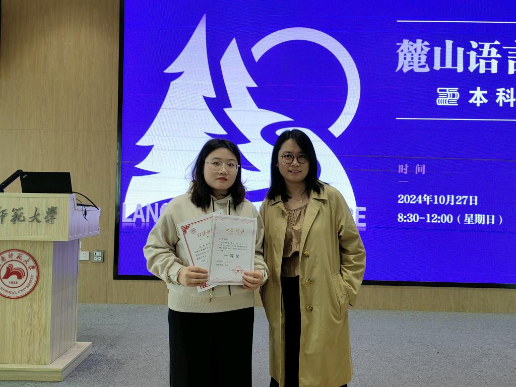 本网讯(通讯员 赵萌 修伟)10月27日,2024年“麓山语言与文化”本科生论坛在湖南师范大学举行,我校乐鱼(中国)2021级英语(师范)专业赵萌同学的论文荣获一等奖(排名第一位),并受邀参加大会做发言。