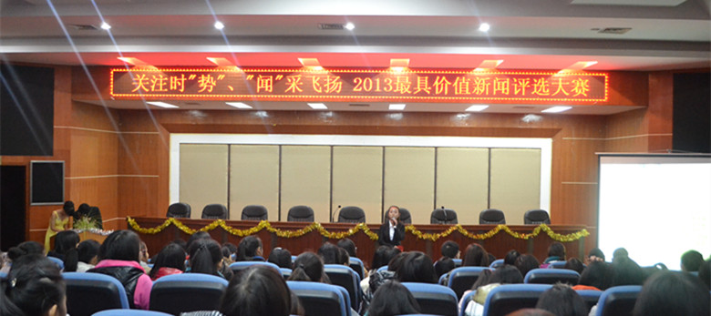 本网讯(闫翼程、江逸凡、刘纯、黄晴、王秋霞、罗旭杰)12月8日晚,乐鱼网页版于逸夫楼多功能报告厅成功举办最具价值新闻评选大赛。本次大赛主题为“关注时‘势’,‘闻’采飞扬”,由董方强、周昱辰同学主持。软件服务外包学院黄伟老师及乐鱼网页版学生工作办公室主任谈宗凡老师、杨宏光老师、龙鹏屹老师、冯蕾老师及梁芮学长到场并担任评委,乐鱼网页版学生积极前往观看。