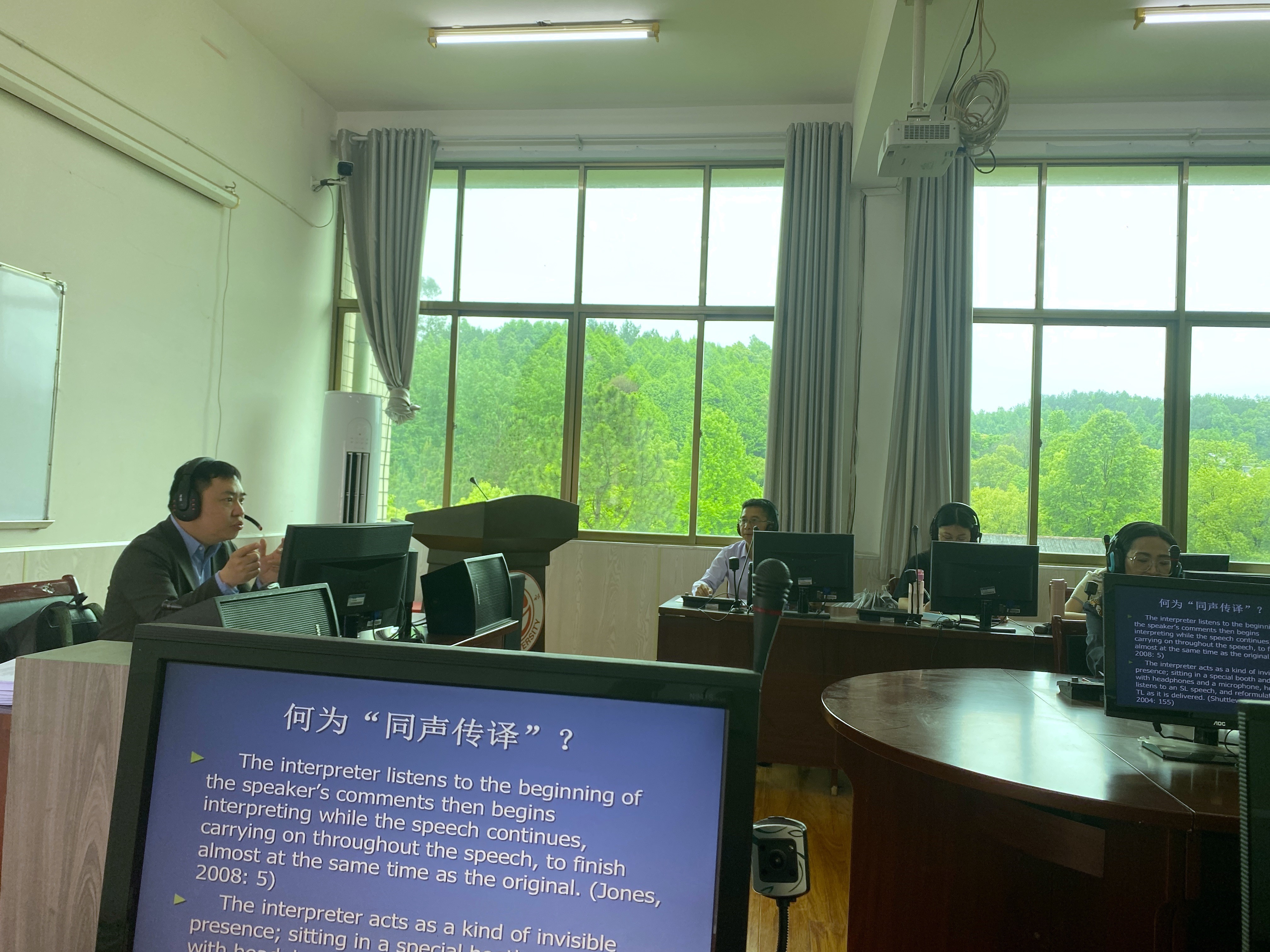 5月5日,詹成教授以同声传译技巧与实训为主题的MTI口译工作坊在逸夫楼3608同声传译教室顺利举办。外国语院长刘汝荣、口译教师黄静莅临现场学习,乐鱼(中国)副院长唐小田主持本场工作坊,2022级全体翻译硕士研究生及2020、2021级在校研究生参加。