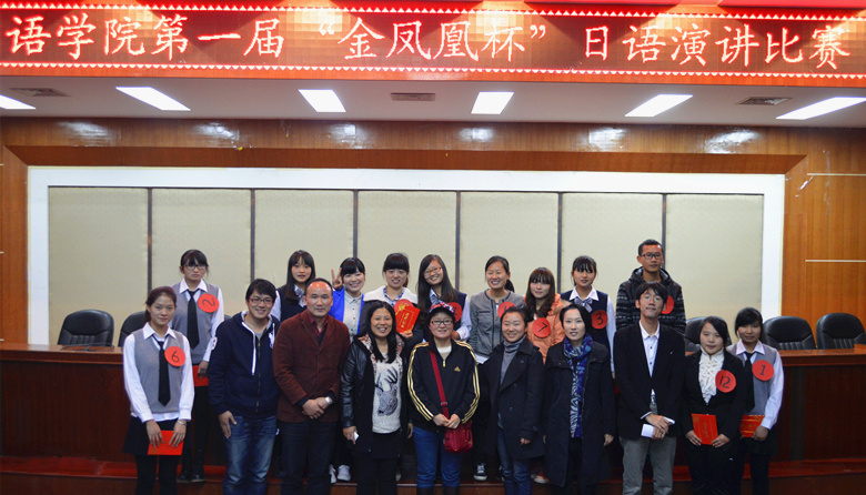 本网讯(闫翼程、江逸凡、王秋霞、刘纯、罗旭杰)11月12日晚6:30,乐鱼网页版第一届“金凤凰杯”日语演讲比赛于逸夫楼多功能报告厅隆重举行。本次大赛由朱晓彤、黄琮泰两位同学主持,乐鱼网页版院长汤敬安、日语系副主任陈静秋及日籍教师中村铃奈、伊势光等日语系老师出席并担任评委,乐鱼网页版日语系全体学生均到场观看。