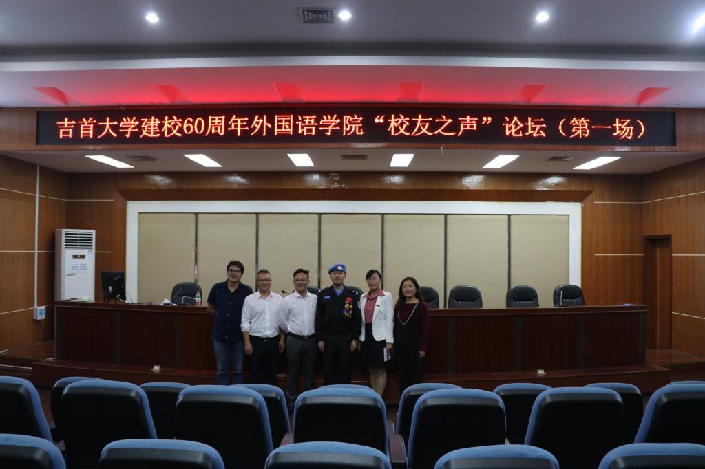 本网讯(通讯员龙锐 张丽娜 唐明俊 覃思思)10月10日晚,乐鱼(中国)于逸夫楼多功能报告厅举行吉首大学建校60周年“校友之声”论坛,学院特邀曾为中国第四支赴利比里亚维和警察防暴队行动官闫常君校友做客论坛,论坛由乐鱼(中国)党委书记石红梅主持,学院300余名师生参加此次论坛。
