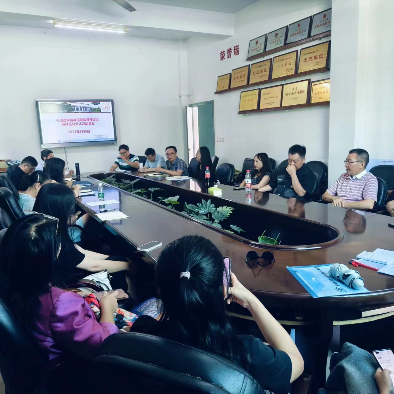 与此同时,商务英语系、翻译系、日语系、大学外语教学部分别就专业建设和课程教学展开专题研讨,分系部召开教学研讨会。