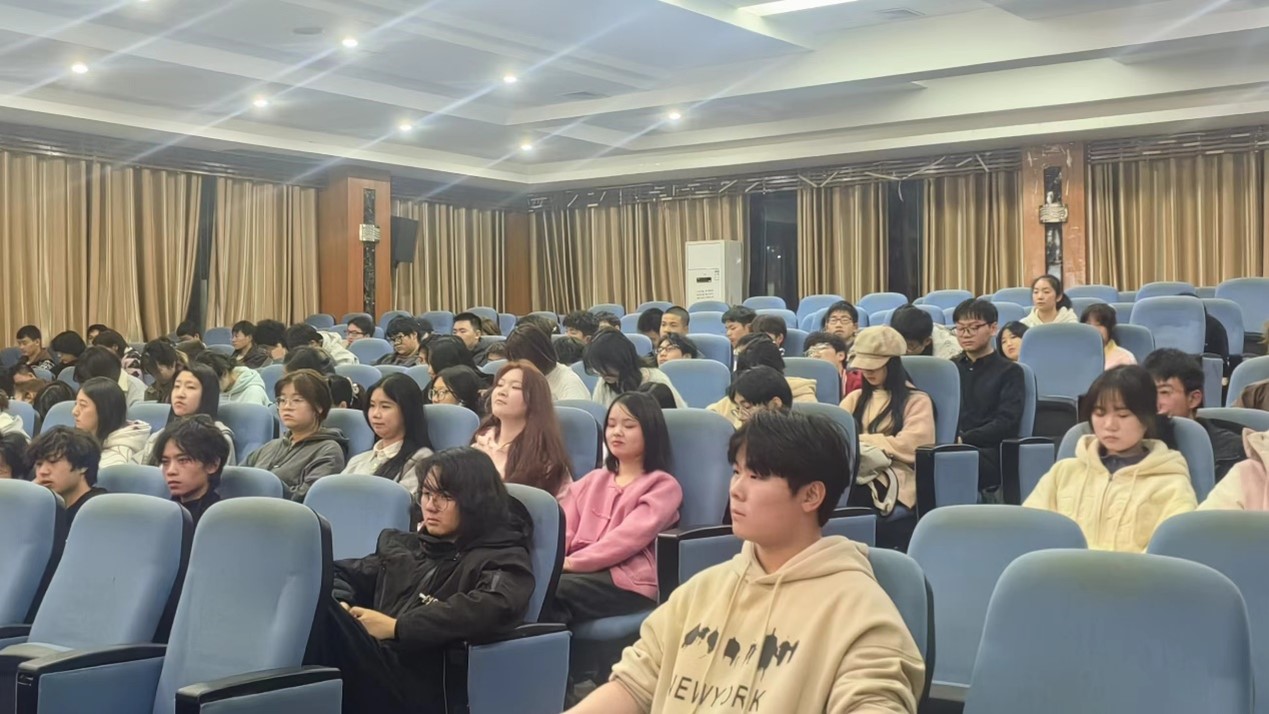 随后,潘贵民老师就日语系历史及传承、日语专业能力培养、日语系的前景及学风建设要求等四个部分进行了主讲与部署。在日语专业能力的培养方面,潘贵民老师从语言、知识和能力三方面进行了深入解读,他认为学习日语要多记多讲,要有适合自身的方法,同时也要注重知识的积累和能力的培养。针对学风的建设问题,潘贵民老师要求学生们要努力做到不缺课不旷课,上课时前排就坐,减少手机的使用时间,端正学习态度,提高上课积极性等;此外,日语系将努力推动日语角活动的开展,让学生们能更多地了解和认识日本文化。在最后的问答环节中,同学们热情参与互动,潘贵民老师宝贵的经验与精彩的分享使在座同学受益匪浅,现场气氛热烈融洽。