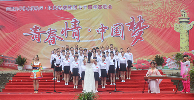 本网讯(杨东旭 余孟韬)吉首大学张家界校区“青春情•中国梦”纪念抗战胜利七十周年赛歌会于5月11日下午3点在一教前坪举行。