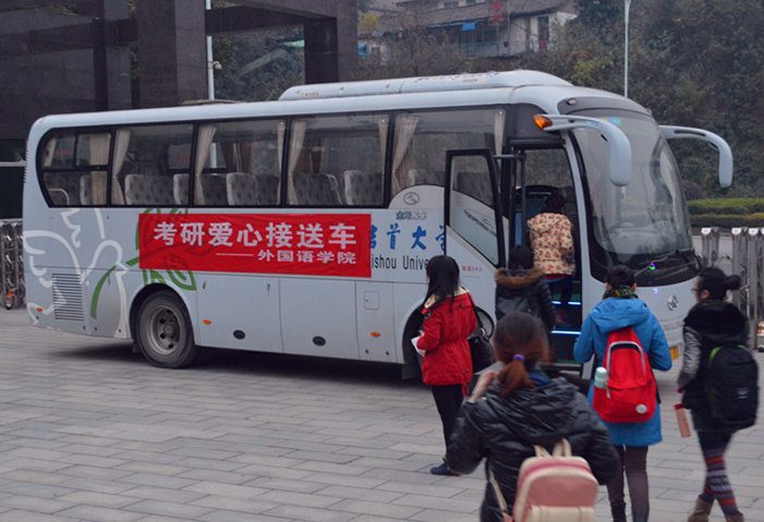 本网讯(罗旭杰 黄晴)2014年12月27日一年一度的考研如约而至,乐鱼(中国)为了方便我校考研学子奔赴考场特准备了考研爱心接送车,助力我校考研学子成就考研梦。