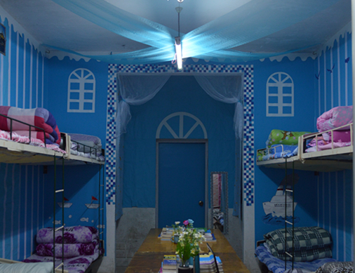 各参赛寝室讲解员分别介绍了寝室的主题、寝室名称以及设计理念。各式各样的设计、个性的再利用改造挂饰以及充满书香味的书法字幅让每个寝室都拥有着自己的独特风格,例如蓝色梦幻的海洋之家Blue Blue,书香满屋的雅舍等。