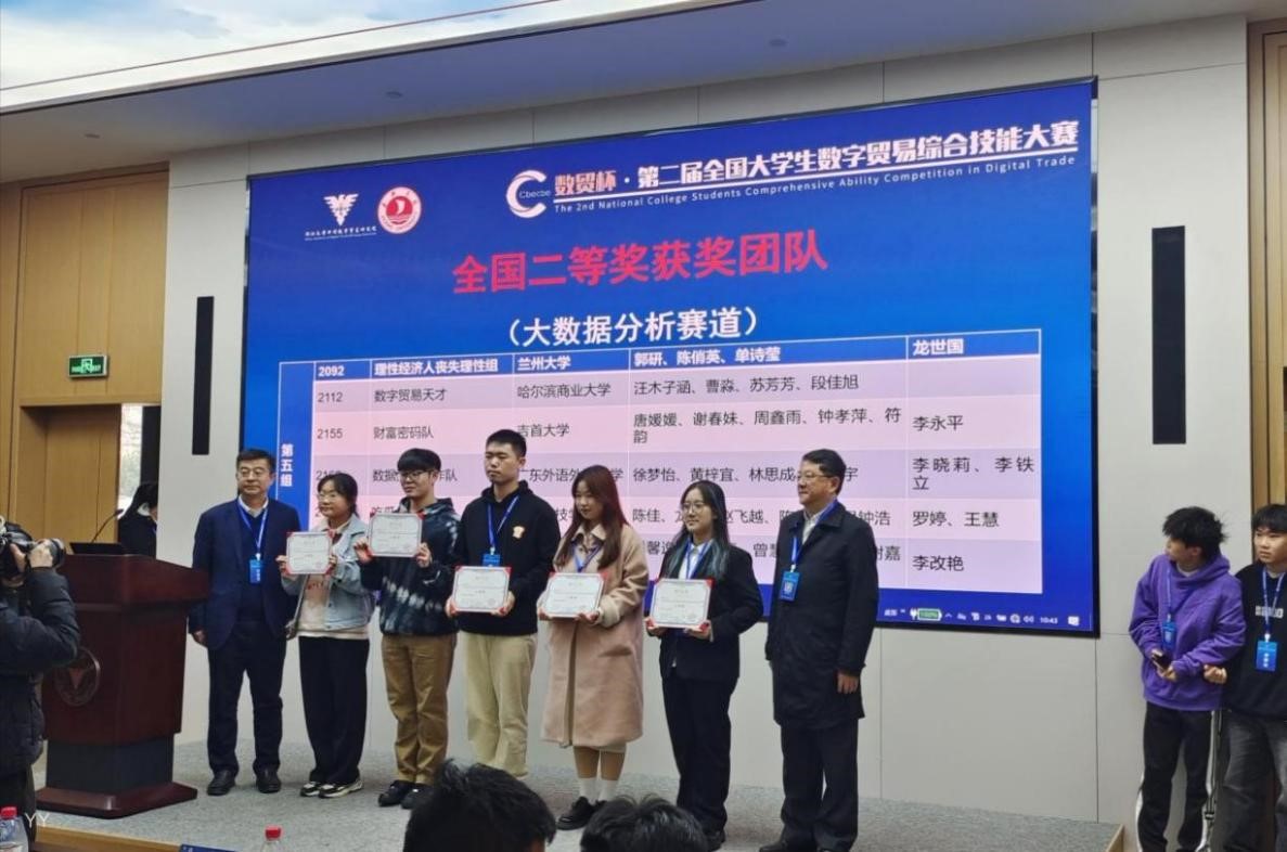 图为大数据分析赛道全国总决赛二等奖团队领奖