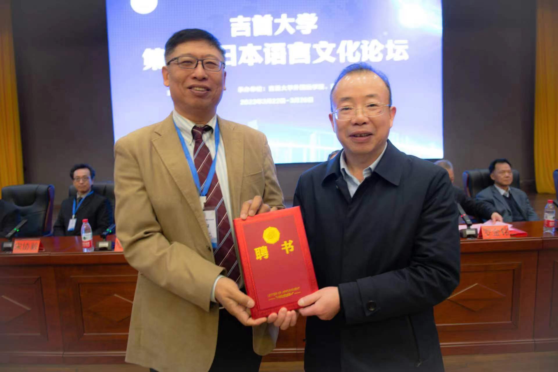 此次论坛还穿插了三个重要仪式。开幕式上,举行了简约而隆重的客座教授受聘仪式。黎奇升为修刚、滕军、韦立新等专家颁授客座教授聘书。值此,自2010年首届论坛后,我校共聘请了国内日语界14位顶级学者为客座教授。论坛第二天,举办了校级科研平台“域外汉字研究所”揭牌仪式。揭牌仪式由我校党委委员、副校长姜又春主持,出席论坛的专家们一起为我校新成立的“域外汉字研究所”揭牌,专家代表还为研究所的成立发表祝贺讲话。李大清教授就域外汉字研究设想与前沿问题做了介绍。